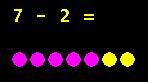 There are seven dots in all. Two are yellow. How many are not yellow?