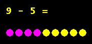 There are nine dots in all. Five are yellow. How many are not yellow?