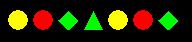 yellow circle --> red circle --> green diamond --> green triangleYou can see that in the second time through the pattern that the green triangle is missing.
