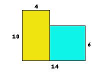 Method Two: full_height * width_1 + width_2 * height_2 In this case you multiply the full height by the adjacent short width and then add the product of the second partial width by the second partial height. Using the example we have: 10 * 4 + 10 * 6 = 40 + 60 = 100 square unitsObviously, either method we use will yield the same answer. |