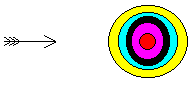 Your job will be to make an arrow which moves towards and finally lands in the middle of a target. The target should be located on the extreme right hand side of the screen and the arrow should begin its flight on the extreme left hand side of the screen. Yes, the target needs to be multi-colored like the example!!! |