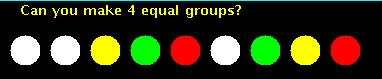 ![]() NO: There are 9 balls. You could make 4 groups of 2, but you would still have one left over. |
