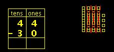 NOTE: More "Grid Subtraction", but this time we are working with the TENS column. Explain this to the student. Work through these examples and then make up a few more before going on to the activity.