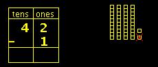 STEP ONE: Subtract ones --> 2 - 1 = 1 STEP TWO: Bring down tens
