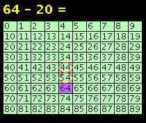 To find the answer count back by tens: 64, 54, 44.