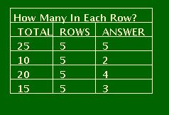 In the first row we have 25, 5, and 5. As a backwards multiplication problem
