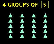 Notice in these problems that the number at the beginning of the problem and the number that goes in the box equal the total number of triangles when they are multiplied. In this problem we have 4 x 5 = 20.