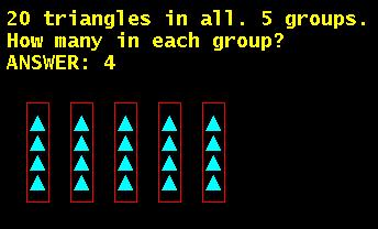 How many triangles are there in each group if there are 20 triangles divided into five groups? Take a look at this example.