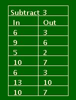 The rule for this table is "Subtract 3".