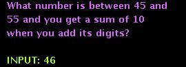 Here are the numbers BETWEEN 45 and 55: 46, 47, 48, 49, 50, 51, 52, 53, 54 When you add the digits of these numbers the only one which has a sum of ten is 46.