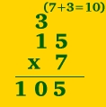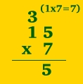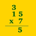 STEP ONE: Multiply numbers in ones column. ( 5 x 7 = 35 ) |