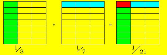 This illustration is meant to help you picture how the multiplication of fractions works. One-third of one-seventh is one-twenty-first.