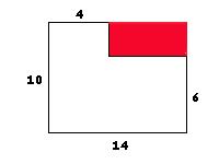adjacent_short_width In this case you multiply the full width by the full height and then subtract away the product of the short width and short height which share a commond vertex. Using the example we have: 10 * 14 - 4 * 10 = 140 - 40 = 100 square units |