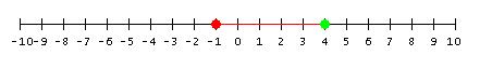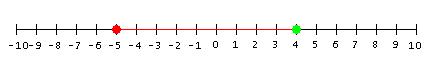 The green dot represents the 4 in the problem. The red line represents the 5 in the problem (since it is five units long). The red dot represents the answer to the problem. As you can see, subtracting positive five is the same as adding negative five.