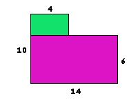 adjacent_short_width In this case you multiply the full width by the full height and then subtract away the product of the short width and short height which share a commond vertex. Using the example we have: 10 * 14 - 4 * 10 = 140 - 40 = 100 square units |