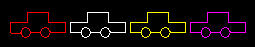 se 90 fd 10 se 0 re 46 [[ fd 1 rt 12 ]] se 90 fd 10 se 0 re 46 [[ fd 1 rt 12 ]] se 90 fd 10 se 90 fd 5 se 0 fd 10 se 270 fd 17 se 0 fd 10 se 270 fd 21 se 180 fd 10 se 270 fd 17 se 180 fd 10Your cars will be placed at (-120,0), (-60,0), (0,0), and (60,0). NOTE: You may not use the sz command for this assignment. Use sx instead. |