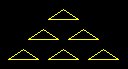 "pu sz 20 0 pd pc 255 255 0 se 90 fd 18 se 330 fd 6 se 270 fd 12 "+ "se 30 fd 6 se 90 fd 6 se 330 fd 6 se 210 fd 3 "+Here are the starting point for three of the pyramids: (0,0), (20,40), and (10,20). You will have to figure out the rest of them! HINT: Start the white one at (20,40). |