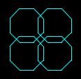 Q: How do we make a hexagon? A: re 8 [[ fd 10 rt 45 ]] Q: How do we make a single side of this image? A: fd 5 lt 80 fd 10 rt 160 fd 10 lt 80 fd 5 Q: Where do I start? A: Draw the first side at (0,0) with a heading of 0 |