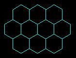 Each beehive cell can be created using: re 6 [[ fd 20 rt 60 ]]. The left-most beehive should be drawn at -50 -20. Use sz's between each cell. Use a horizontal spacing of 34 units between hexagons and a vertical spacing of 30.