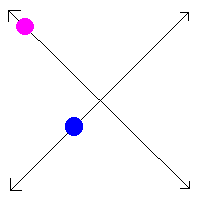 You will create an animation of two circles bouncing from corner to corner as shown in the diagram. Your circles should NEVER touch. So, you will have to take measures to ensure that they do not reach the center of the screen at the same time, BUT each circle must pass through the center of the screen. |
