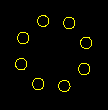 Your assignment is to alter this example in two ways. First you will use squares instead of circles and second you need 12 squares equally distributed in a circle rather than 8.