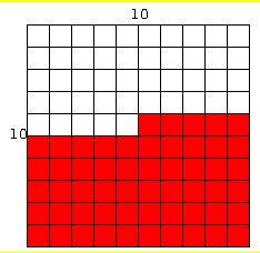 This second picture illustrates the fraction value 4/10. We can re-write the