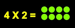 To find the answer, you just count up the dots! NOTE: Draw arrays for the following problems: 3x2, 2x1, and 2x5. A problem with this method is that drawing dot arrays for problems like 12x20 takes a lot of time. Click here to go to the activity | ||