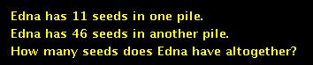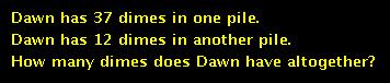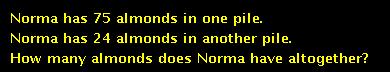 ANSWER: 37 + 12 = 49 ANSWER: 11 + 46 = 57 ANSWER: 75 + 24 = 99