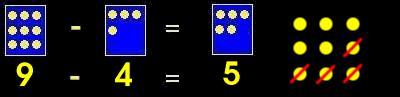You start with 9 and take away 4. How many are left? ANSWER: 5