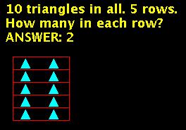 How many triangles are there in each row if there are 10 triangles divided into five rows? Take a look at this example.