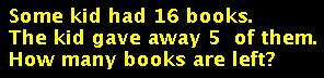 problem. To solve this problem you subtract 5 from 16 and you get 11.