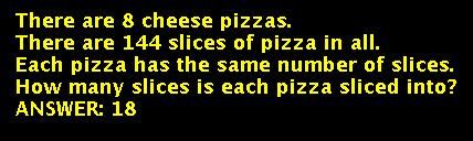 Draw eight pizzas. Draw slices on the pizzas until you reach a total of 144