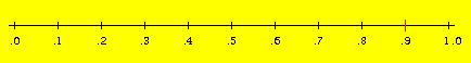 Decimal values can be represented on a number line like the one shown here. The red line on this line is right above .9 and so the red line represents the value of .9 on this number line.