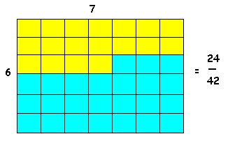 18 since there are 18 filled squares. Denominator: The bottom number of a fraction. In this example the denominator will be 24 since there are a total of 24 squares. Fraction: 18/24 |