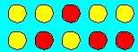 As you can see there are ten balls and six are yellow and four are red. The probability of reaching in the bag and pulling out a yellow ball is 6 out of 10. The probability of reaching in the bag and pulling out a red ball is 4 out of 10.
