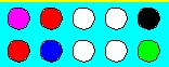 This time we have four white balls, two red balls, and one ball each of black, green, blue, and magenta. (Magenta is the reddish-purplish color.)