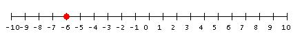 The number -6 is represented by the dot on the number line.