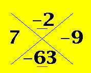To get the bottom answer we multiply 7 and -9 and we get -63 because 7 x -9 = -63.