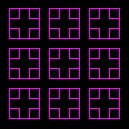 pu sz -40 40 pd re 4 [[ fd 5 rt 90 fd 5 lt 90 fd 5 lt 90 fd 5 rt 90 fd 5 rt 90 ]]Simply altering the numbers you feed to sz will get you the thing image. Here are a few of the points: (40, 0), (40, 40), (-40, 0), and (0, -40). Good luck. |