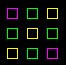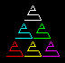"pu sz 20 0 pd pc 255 255 0 se 90 fd 18 se 330 fd 6 se 270 fd 12 "+ "se 30 fd 6 se 90 fd 6 se 330 fd 6 se 210 fd 3 "+Here are the starting point for three of the pyramids: (0,0), (20,40), and (10,20). You will have to figure out the rest of them! HINT: Start the white one at (20,40). |