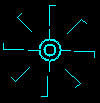 To make the inner circle you type: re 40 [[ pu fd 5 pd fd 1 pu bk 6 pd rt 9 ]] To make the outer circle you type: re 60 [[ pu fd 10 pd fd 1 pu bk 11 pd rt 6 ]] To make the four lines you use this line with number substituted for XX: re XX [[ pu fd 11 pd fd 10 pu bk 21 pd rt XX ]] To make the rest of the image substitute the right numbers for the XX: re XX [[ pu fd 25 pd fd 20 rt 90 fd 6 bk 6 lt 90 pu bk 46 pd rt XX ]] |