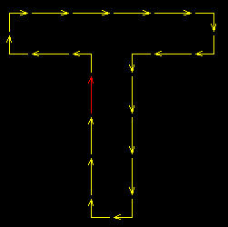 There are three types of arrows used to draw this figure: FULL: fd 40 rt 15 bk 8 fd 8 lt 30 bk 8 fd 8 rt 15 pu fd 5 pd RIGHT: fd 20 rt 90 fd 20 rt 15 bk 8 fd 8 lt 30 bk 8 fd 8 rt 15 pu fd 5 pd LEFT: fd 20 lt 90 fd 20 rt 15 bk 8 fd 8 lt 30 bk 8 fd 8 rt 15 pu fd 5 pd All you have to do is link them to make this image. The end (bottom) of the red arrow is at (0,0). |
