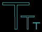 The lower, left corner of the Ts are located at (0,0), (40,0), and (70,0). The first is 88 units tall and 88 units wide. The thickness of the first T is 8 units. Each T is half of the size of the one to the left of it.