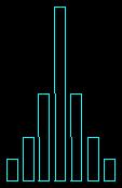 The bottom left corner of this group of bars is at (-50, -50) and the left most bar is 20 units tall and 10 units wide. Each bar is either twice as tall or half as tall as the bar(s) next to it. The spacing between bars is five units.