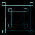 The bottom left corner of this image is at (0,0). The corner squares have sides 10 units long. The overall image is 100 x 100. The spacing between the outer shape and the inner shape is 10 units.