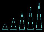 The triangles have their left, bottom corners at: (-80, -20), (-50, -20), (-20, -20), (10, -20), (40, -20). Each triangle has a base 20 units wide. The first triangle is 20 units tall. Each triangle is 20 units taller than the one to its left.