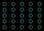 Each circle is created using:re 12 [[ fd 3 rt 30 ]] Draw the first circle at (0,0). Draw the one above it at (0,20), the one to the right at (30,0) and the one to the right and above at (30,20). Continue this spacing pattern until you have 25 circles as shown in the image. |