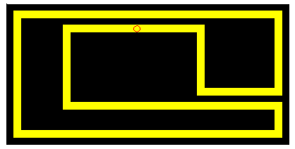 Here are the user defined commands used to create the animated maze: black - creates a large black background area hall - creates yellow halls maze - creates the maze guy - draws, waits, and erases the little circle lguy - moves guy to the left rguy - moves guy to the right dguy - moves guy down uguy - moves guy up moveguy - navigates guy through the maze --------------------------- The sample maze is made up of ten lines or halls. You will create a more interesting maze made up of at least 15 lines or halls.