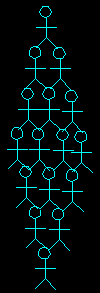 The trick here will be to properly position the turtle before you draw each person. Drawing the person will be easy since all you have to do is type PERSON (or whatever you decided to name it). The trick will be to properly position each PERSON. You may want to use the SETXY command to help you with this assignment. Consult the LOGO documentation or lesson nine for more information on using SETXY. You may also wish to shrink the person so you can fit all of them on the screen at once.