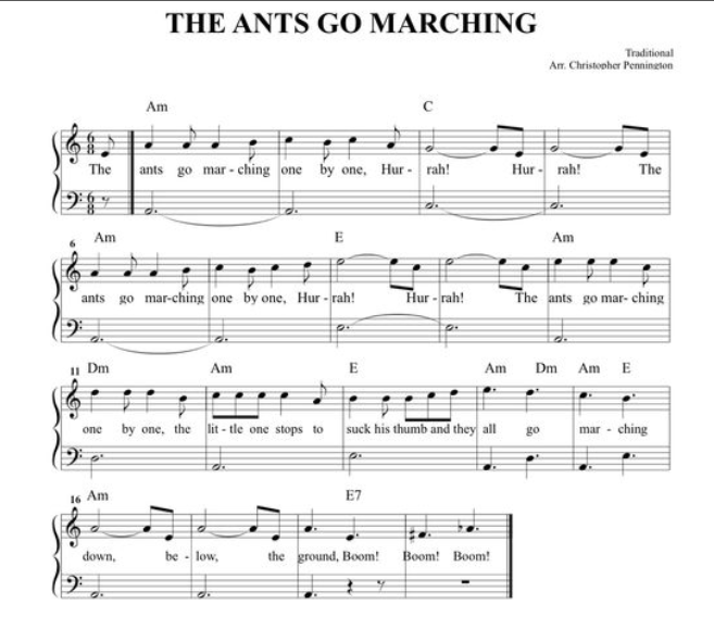 - Program Scratch to play "The Ants Go Marching" as the ants march.